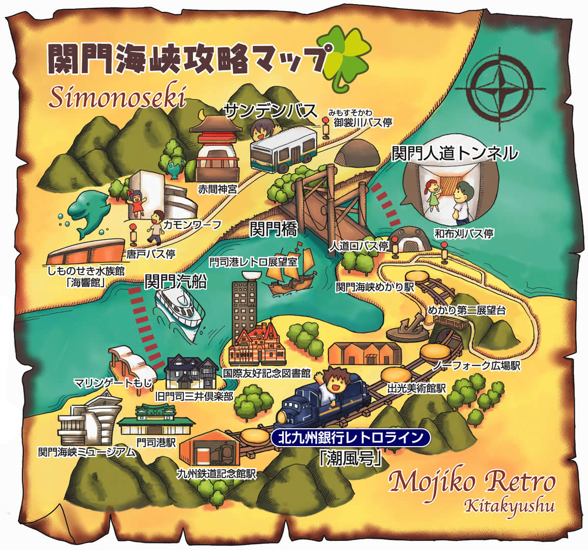 我們去了潮風號車站,花800円買了関門海峡クローバーきっぷ(即是循環一周票)。車票包括潮風號由門司港站前往關門海峽Mekari站車費;步行通過關門隧道(免費);御裳川巴士站至唐戶巴士站的車費和關門汽船的船費。剛剛好走了一圈。